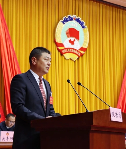 县政协主席吕丰代表政协嵩明县第十届委员会常务委员会作工作报告。