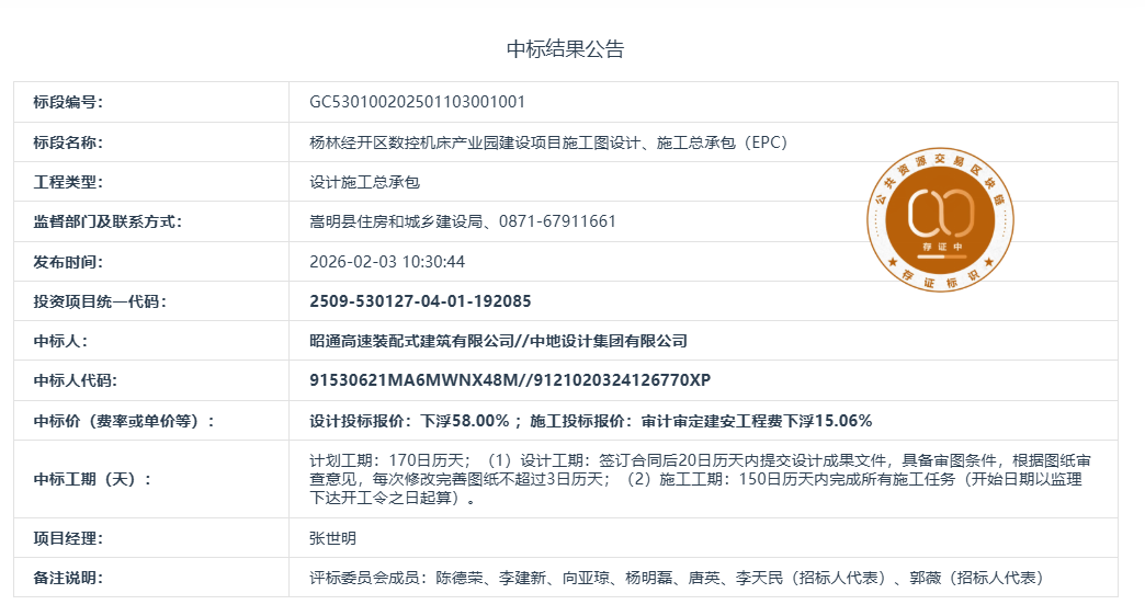 杨林经开区数控机床产业园建设项目(中标结果公示)