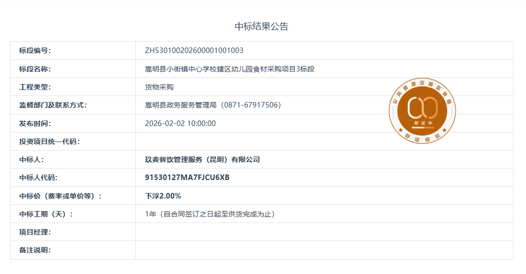 注:以上公示内容转自”云南省公共资源交易信息网“