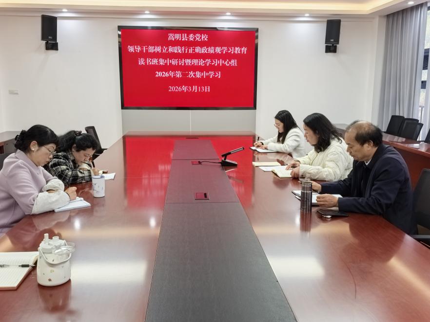 3月12日,县委党校领导干部树立和践行正确政绩观学习教育读书班集中研讨暨理论学习中心组2026年第二次集中学习顺利举行。全体党员干部紧扣“如何树立和践行正确政绩观”主题开展深入学习交流,党支部书记、常务副校长徐金凤同志主持学习并作总结讲话,推动学习教育走深走实、见行见效。