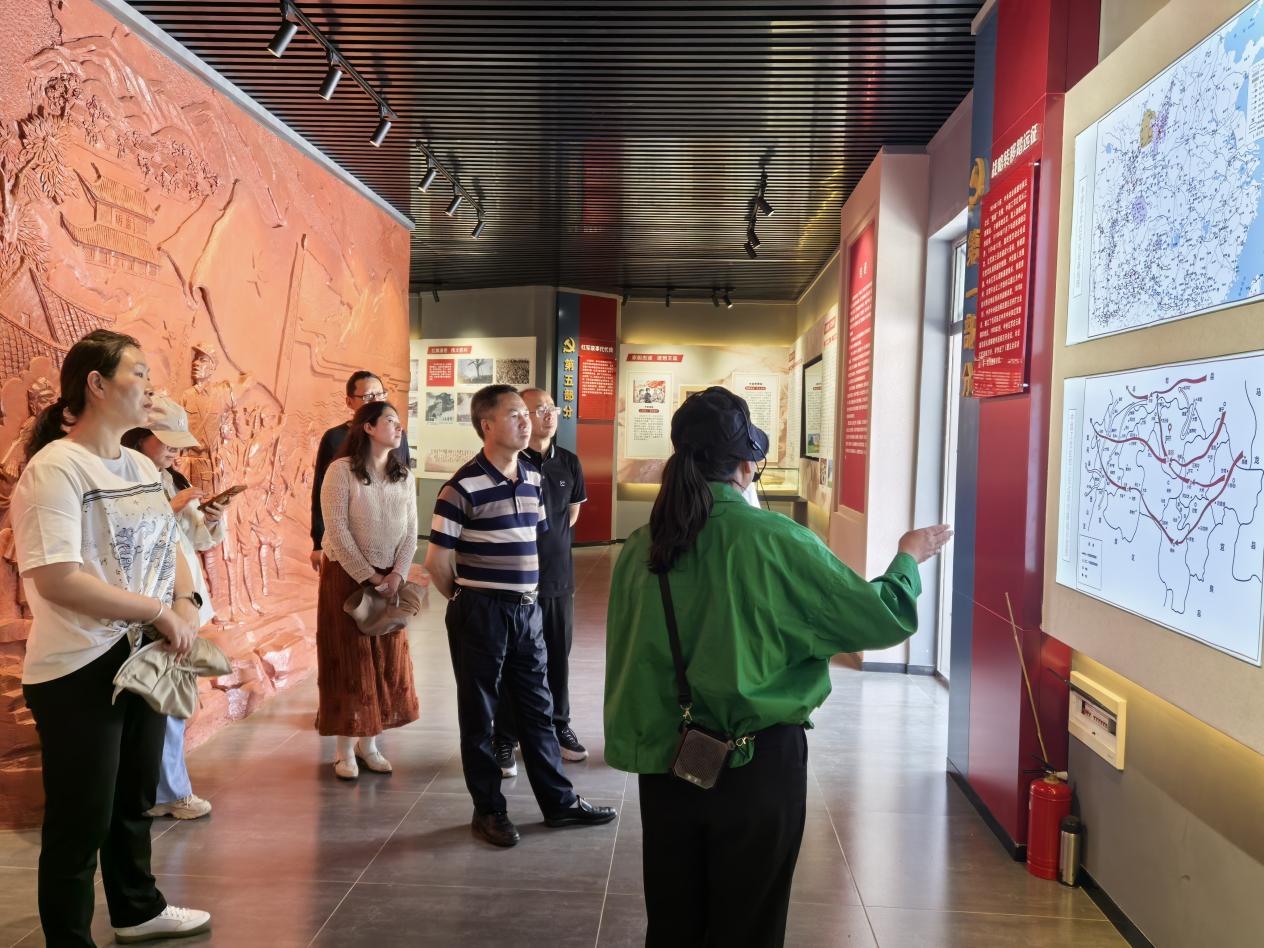 考察团首先前往东村爱国主义教育基地(昆明党史教学点、昆明市“五星级”党员干部教育现场教学点)参观学习。随后,考察组走进村晓(嵩明村播小院)文旅空间,实地了解由旧小学改造而成的文艺民宿。该点位将教室改造为特色客房,配套泳池、瑜伽室、泡池等设施,是乡村文旅与党性教育融合的典型案例。
